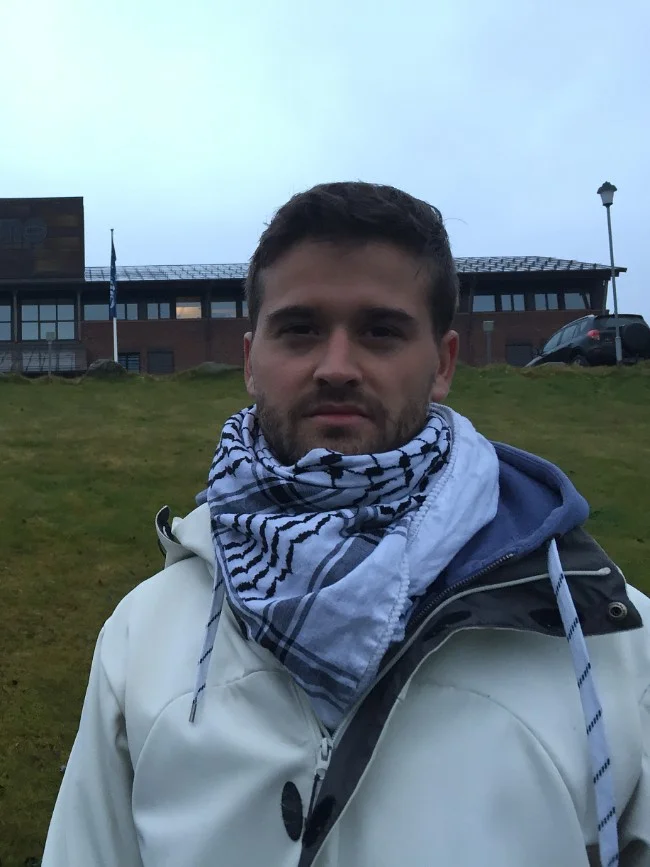 – Vi kjemper mot at norske våpen skal drepe palestinernes barn, deres mødre og deres besteforeldre, sier talsperson Nikos Tavridis-Hansen til NRK.